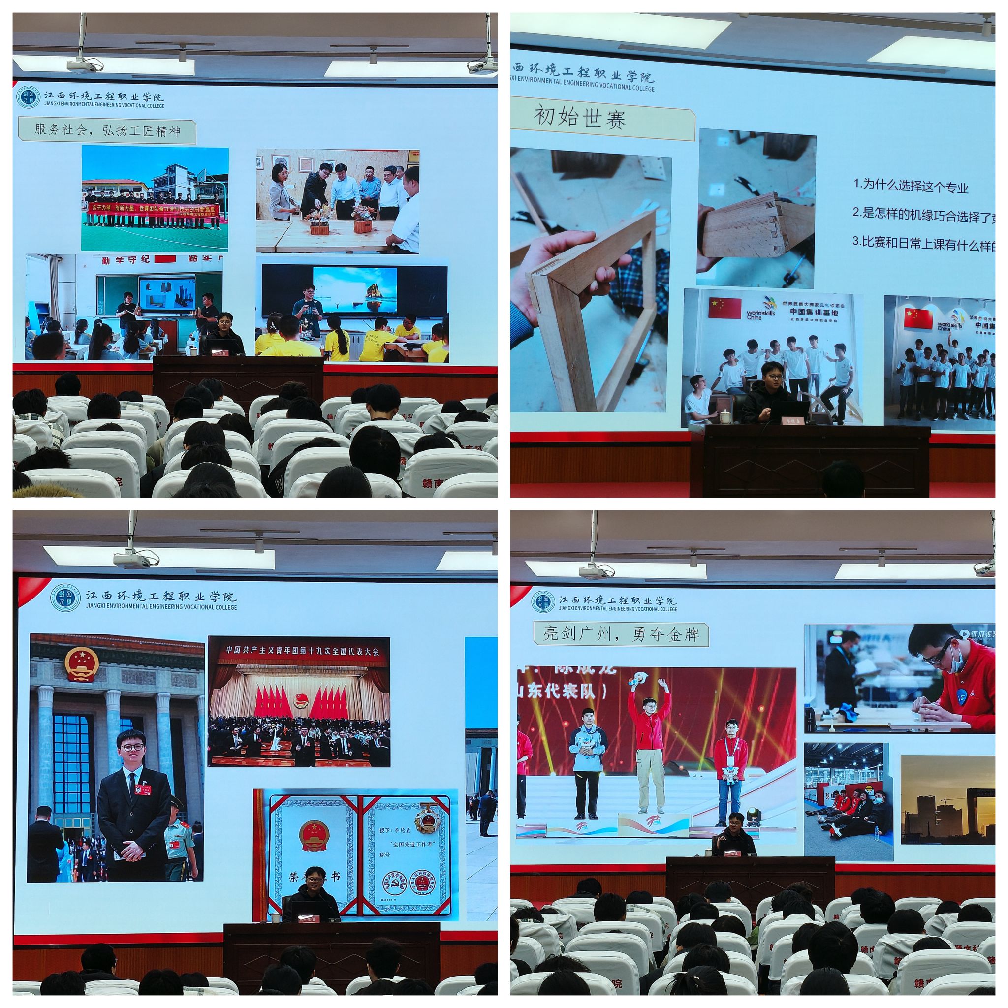 本网讯:为弘扬工匠精神,引导青年学子树立远大理想、锤炼过硬本领,12月23日,今年会在图书馆报告厅成功举办“新时代先进人物进校园:世界技能大赛成果与专业人才培养运用”专题讲座,讲座特邀2022年世界技能大赛特别赛家具制作项目金牌获得者、全国先进工作者李德鑫担任主讲。本次讲座由今年会党委委员、学生工作办公室主任魏炳辉主持,全校师生代表共300余人到场聆听。