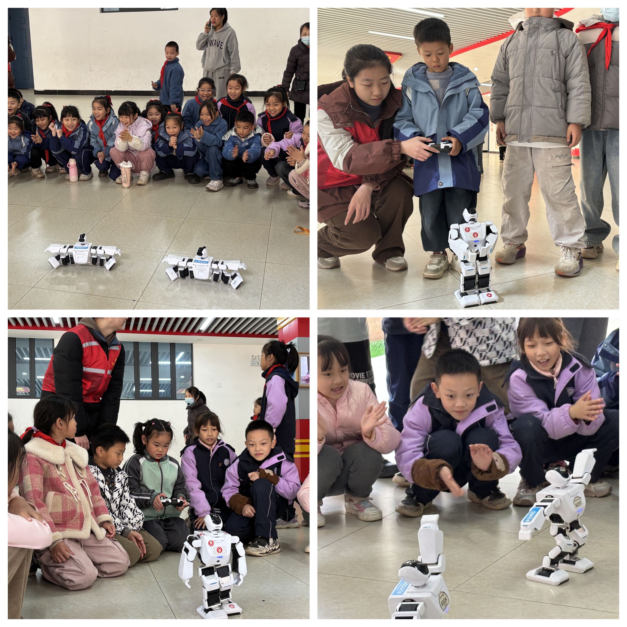 活动现场,在志愿者的俯身指导与学生的操作配合下,“三信”志愿服务队带来的机器人利落完成前进、转向、列队等动作——时而整齐列队尽显默契,时而摆出俏皮造型逗得现场笑声阵阵。围坐一旁的孩子们眼睛都“黏”在了机器人身上,掌声与欢呼一浪盖过一浪,还不停向志愿者追问机器人“会动”的秘密。“我们希望通过通俗易懂、寓教于乐的方式,让科技‘看得见、摸得着、玩得转’,在孩子们心中播下科学的种子。”志愿服务队队员张文彪表示。此次科技节不仅是一次知识的传递,更是一场双向成长——大学生志愿者在服务中深化专业理解、提升实践能力,小学生则在沉浸式体验中激发探索热情、拓宽视野。