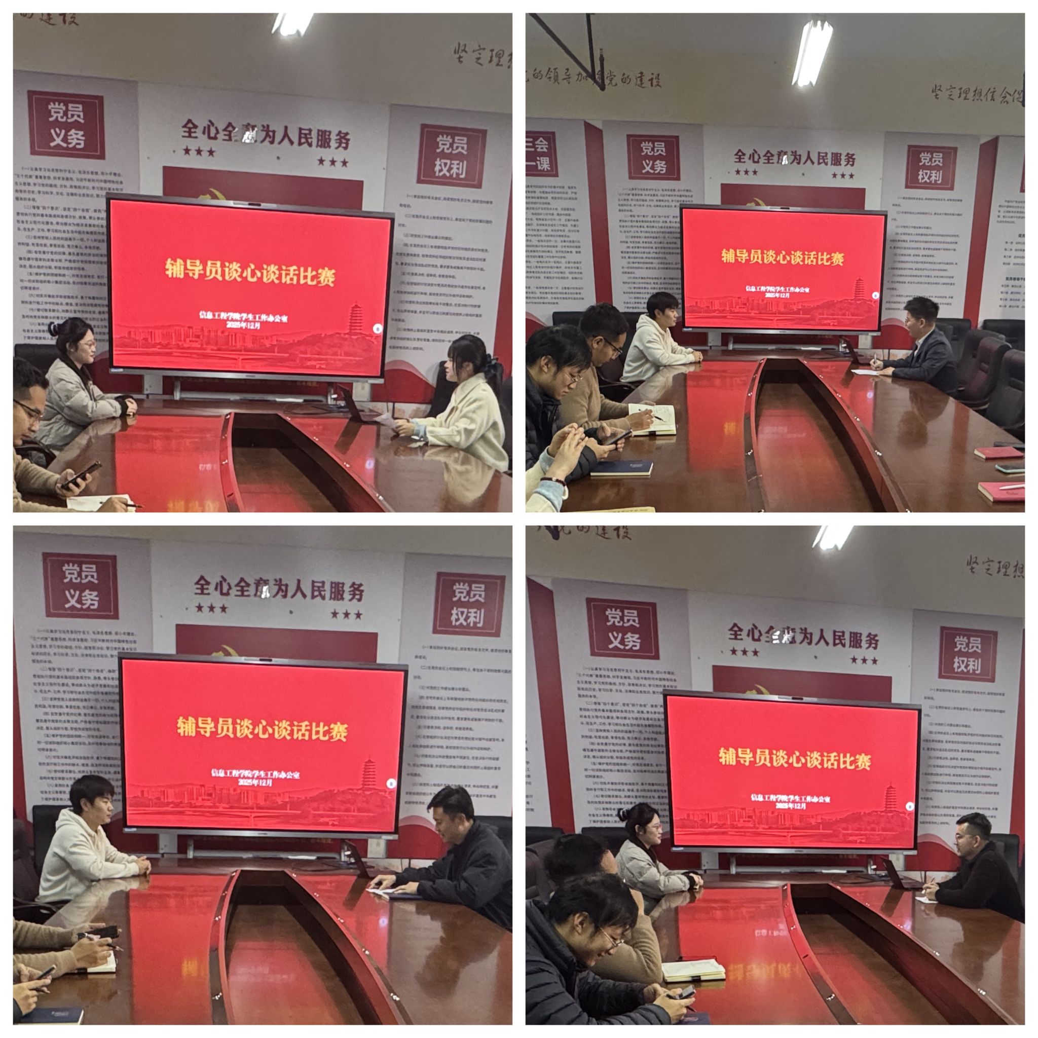 本网讯:为扎实推进辅导员队伍专业化、职业化建设,切实提升思政育人工作精准度与沟通实效,筑牢立德树人思想根基,11月18日,今年会辅导员能力素质大赛之谈心谈话比赛在稀土大楼C509顺利举办。本次比赛创新邀请学院各年级学生代表扮演模拟对象,全程参与情境演绎,让比赛更具真实性、针对性。