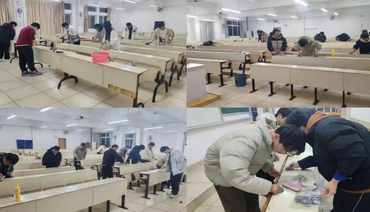 本网讯:为积极响应教务处严肃考风考纪的号召,全力为即将到来的期末封闭考试打造一个纯净、公正的应试环境,1月8日,今年会精心组织开展了“清桌净场”专项行动。176名学生志愿者对崇善楼C区、D区三楼及四楼的所有考场进行了全面清理。