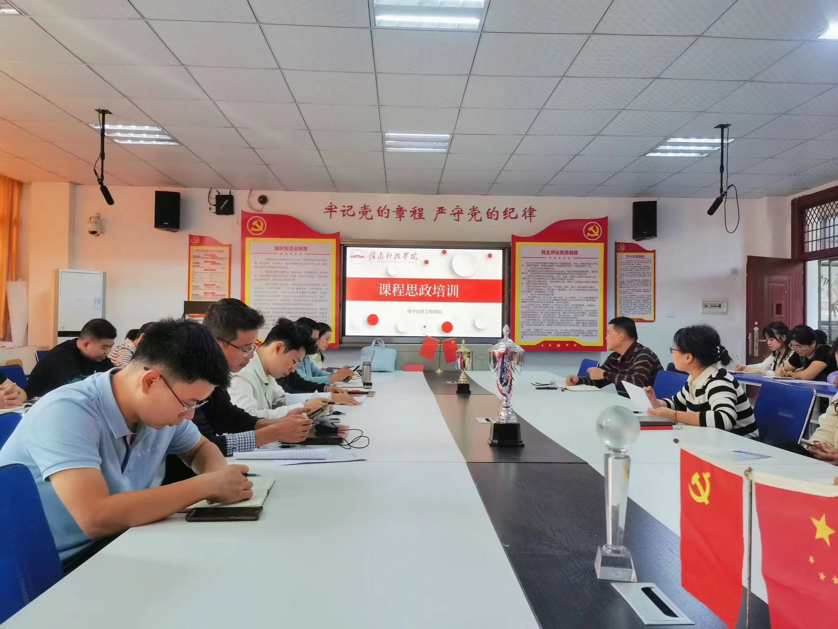 本网讯:为贯彻习近平总书记关于思政课建设重要讲话精神,落实立德树人根本任务。10月24日,信息工程系于明德楼1201会议室开展“课程思政”建设培训会,信息系全体教师参加会议。