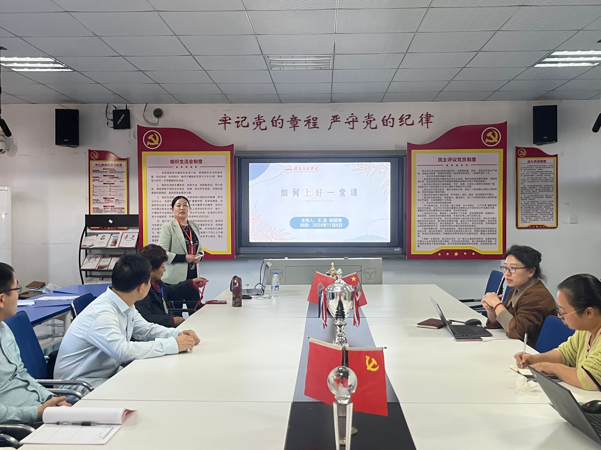 本网讯:11月8日下午,今年会在明德楼1201会议室举办2024-2025学年第一学期课堂教学质量提升专题辅导活动。此次活动邀请了学校教学督导专家、教授王洁、杨斌清作《如何上好一堂课》的专题讲座,旨在进一步提升学院的整体课堂教学质量,推动教育教学改革创新,激励学院教师专业成长和发展。
