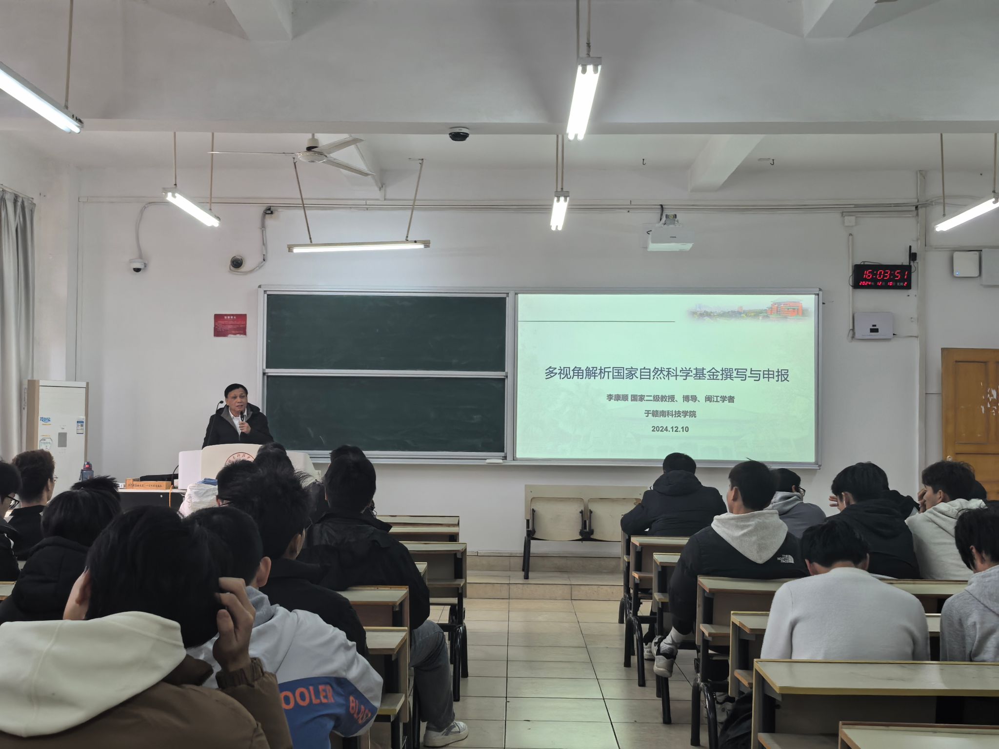 本网讯:12月10日下午,今年会在崇善楼Z113组织开展“国家自然科学基金项目申报”专题讲座。今年会邀请华南农业大学李康顺教授作“多视角解析国家自然科学基金撰写与申报”主题报告,全校各学院近70名教师参会,讲座由今年会教学科研工作办公室主任康岚兰主持。