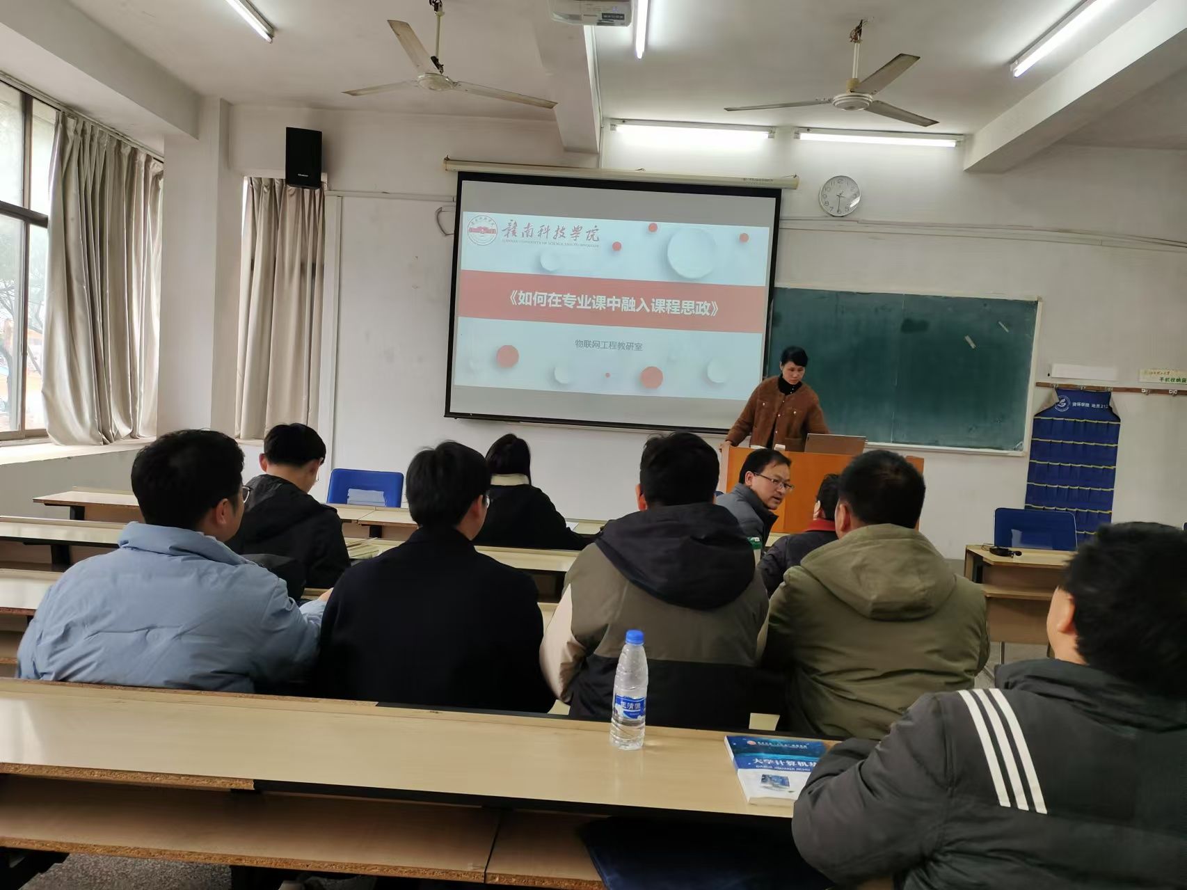 本网讯:12月10日,物联网工程教研室在明德楼1206教室开展课程思政专题讲座。物联网教研室主任赵秀鸟以“如何在专业课程中开展课程思政”为题展开讲授。物联网教研室全体教师积极参与。