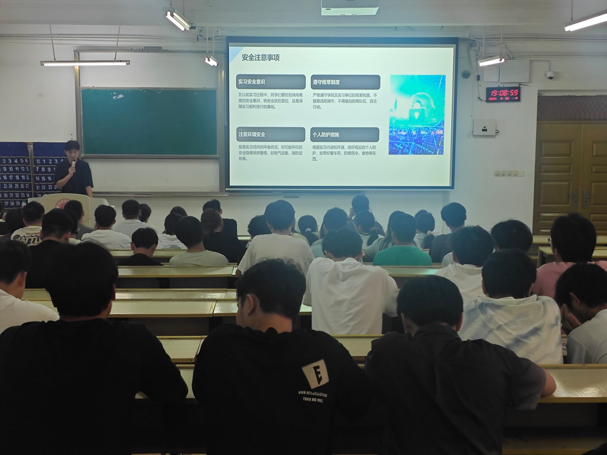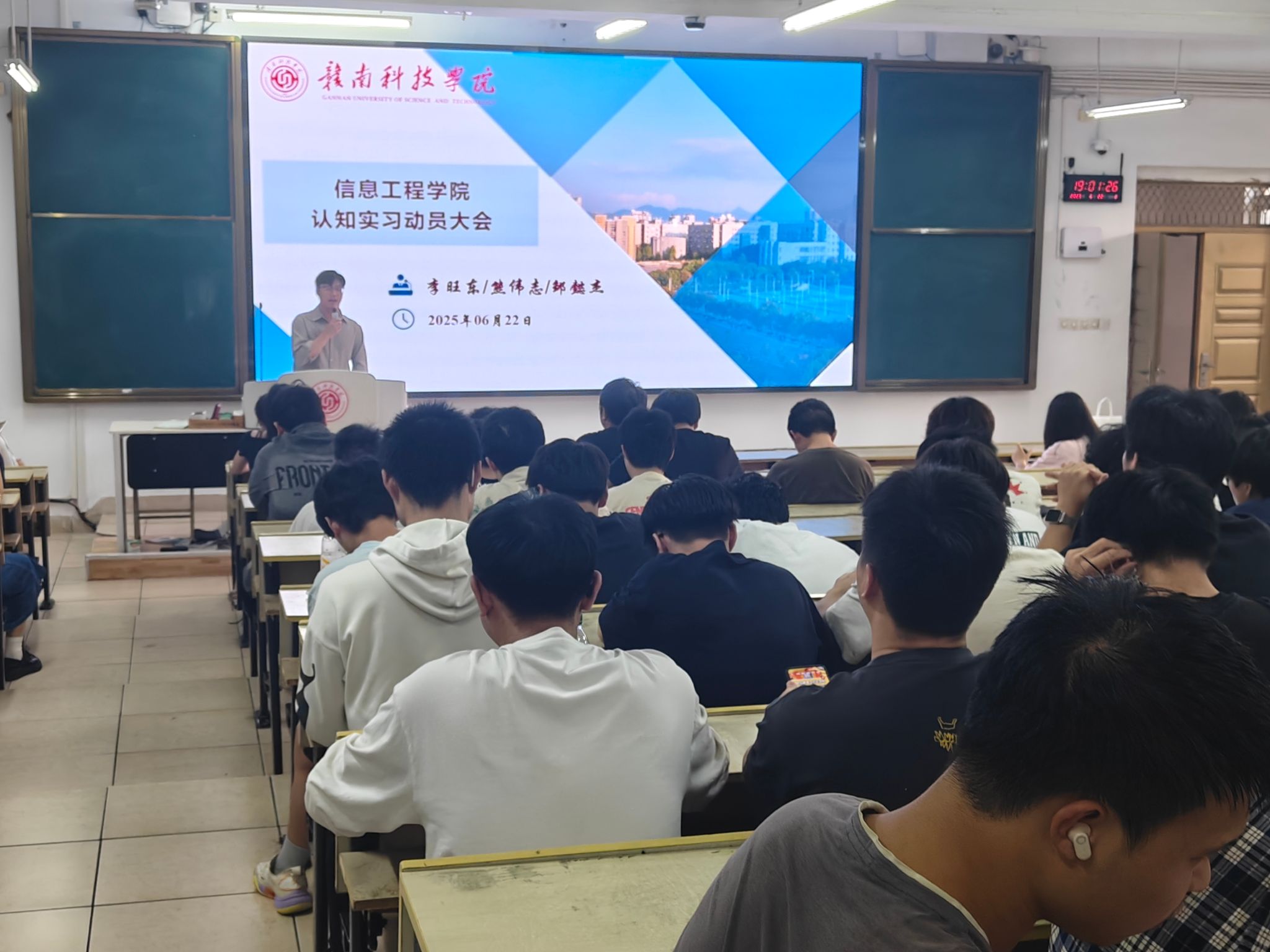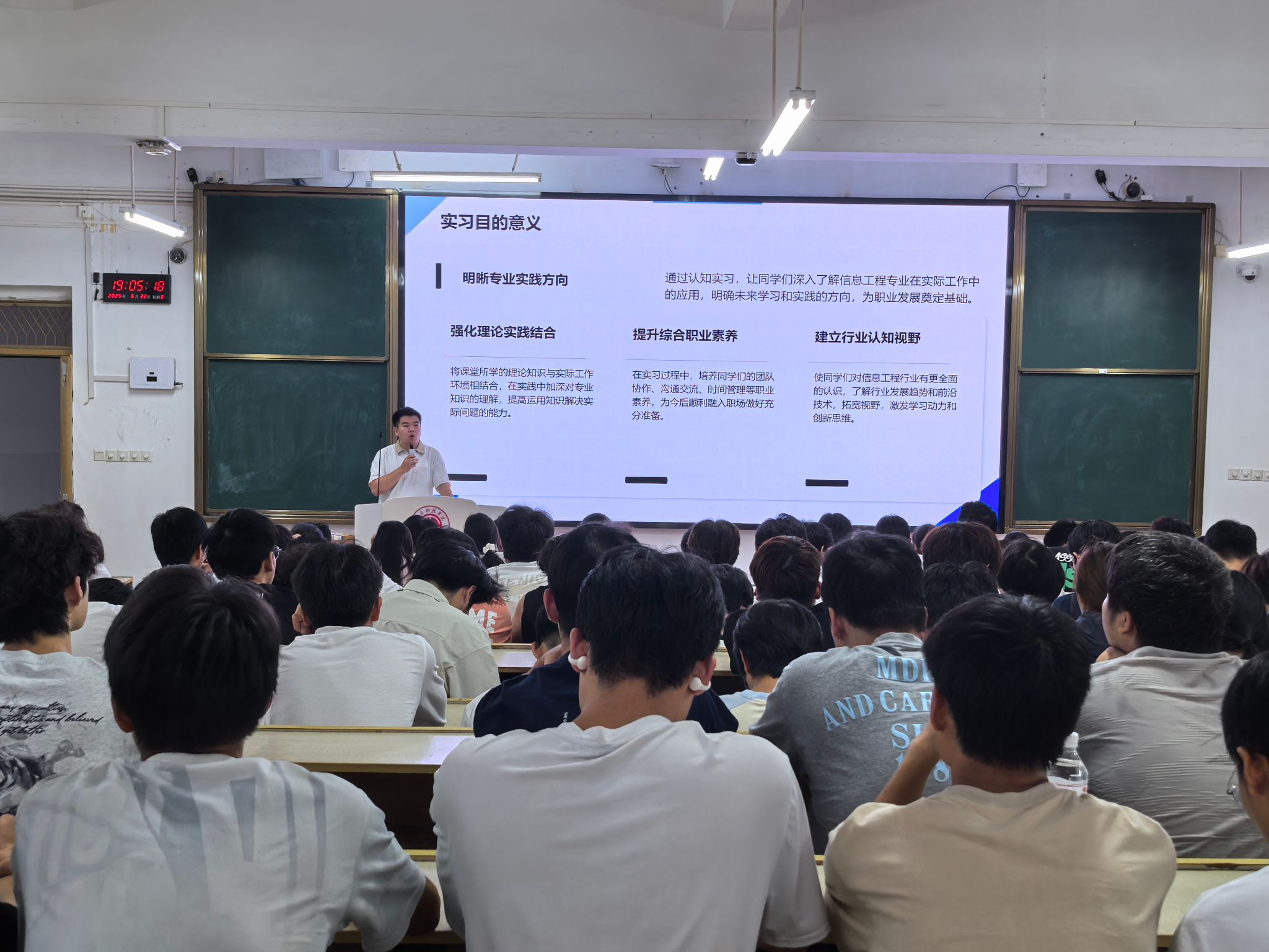 随后,各专业教研室主任结合学科特色,系统阐述认知实习的核心目标与实施框架。计算机专业聚焦“算法落地与工程化思维”,大数据专业围绕“数据驱动决策中的大数据分析与商业价值挖掘”,通信工程专业聚焦“全连接时代的通信协议优化与网络性能提升”,网络空间安全专业锚定“数字化风险防控下的网络安全攻防与数据隐私保护”,电信专业聚集“智能硬件生态中的嵌入式系统开发与硬件协同创新”,物联网专业则以“万物互联场景下的数据应用”为主线,详细解读了实习单位概况、岗位任务及能力要求。班主任熊伟志、邹懿杰、李旺东老师分别在分会场补充说明分组安排、考勤制度及导师对接机制,确保实习流程规范有序。