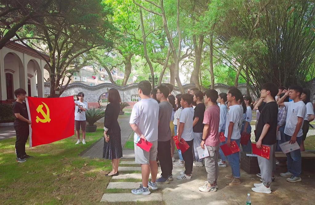 中共华南分局扩大会议暨叶剑英住地旧址是典型的苏式建筑,占地1000多平方米。叶剑英于1949年9月初到达赣州,他在赣州主持召开了华南分局3次扩大会议和对粤作战会议,史称“赣州会议”。首先,同学们认真观看了历史物件,不时驻足交流讨论,对着老照片、老物件回顾峥嵘岁月,感叹新时代幸福美好生活的来之不易,深切感受农民群众的革命精神。随后,吴宪同志给全体毕业生党员分发了纪念证书,并与大家一起重温了入党誓词。