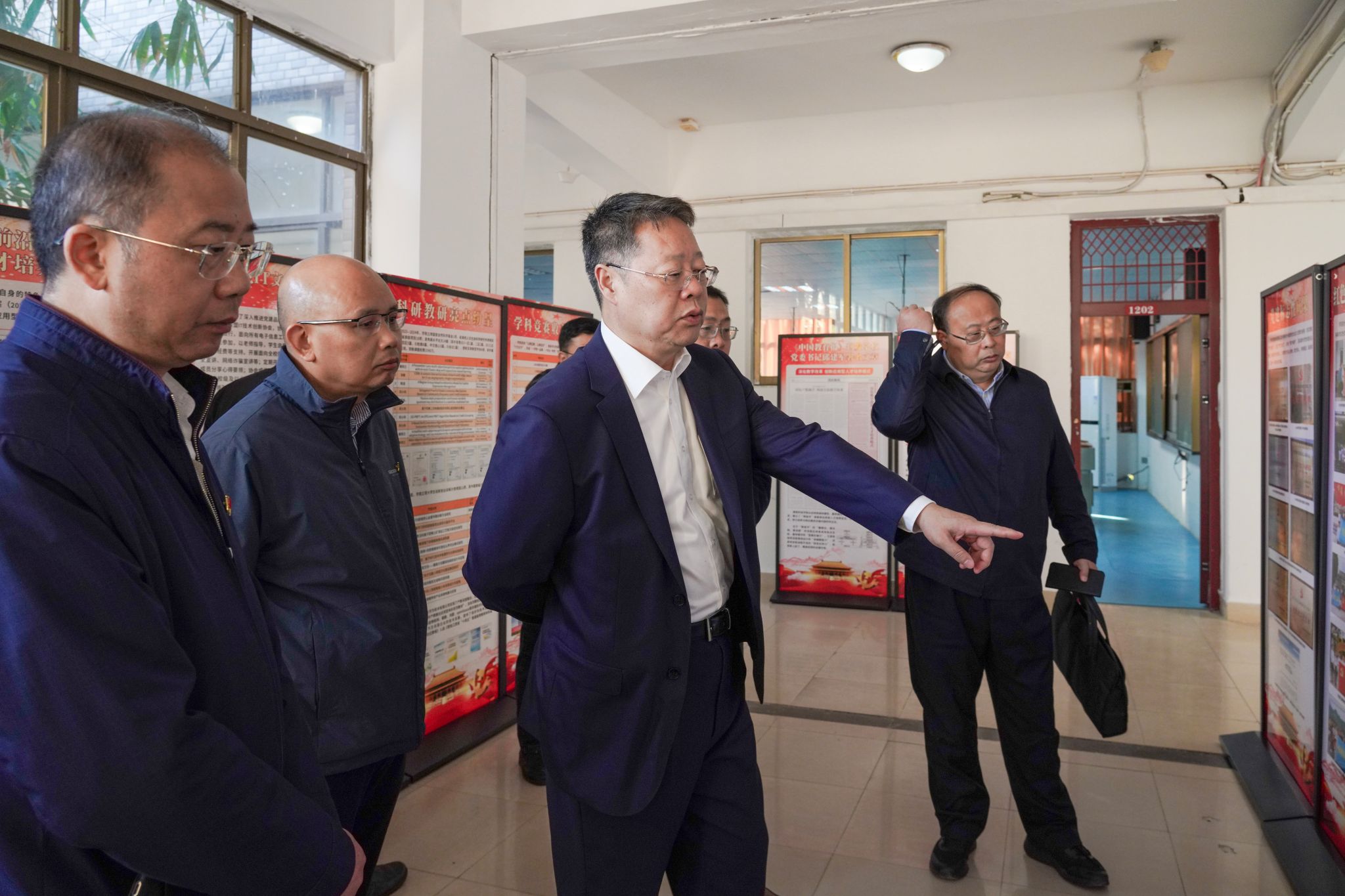 邱建军一行实地查看了今年会党建长廊成果展、荣誉展、党员活动室等党建工作建设情况。今年会党委副书记邓小鸿就学院围绕“全省党建工作标杆院系”建设所开展的各项工作进行了详细汇报,从党建工作机制完善、党组织建设成效、党建引领学科发展与人才培养、党建工作创新举措等多个方面,系统阐述了学院在标杆院系建设过程中的积极探索与实践成果。