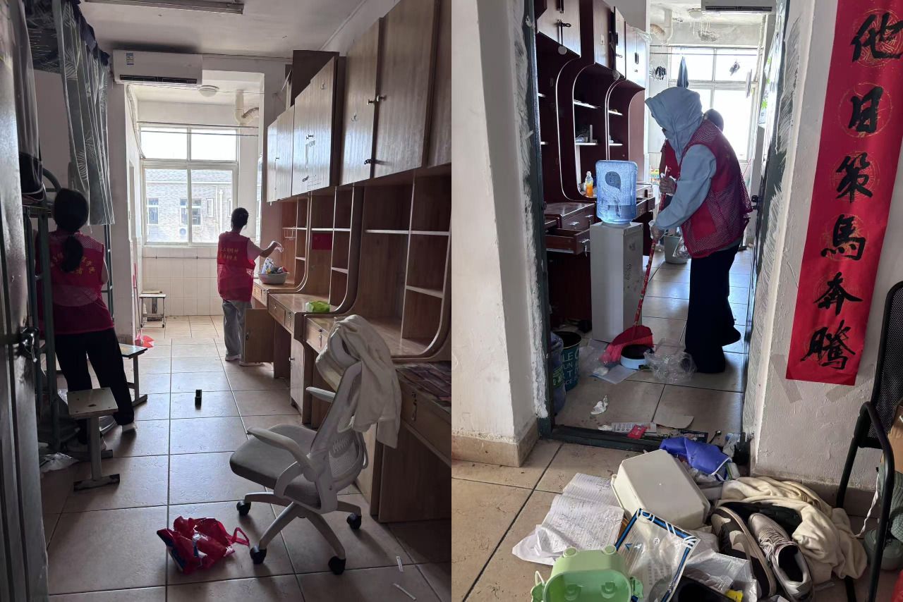 活动当日,尽管烈日炎炎、暑气蒸腾,志愿者们依然热情高涨、干劲十足。他们分工明确,有条不紊地开展清扫工作,不放过任何一个角落,不留下一丝污渍。经过三个多小时的不懈努力,3栋、11栋共计50间毕业生宿舍焕然一新,窗明几净。