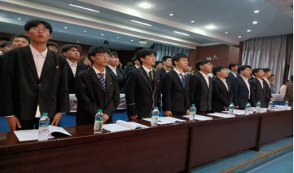 大会开幕式在激昂的国歌声中拉开序幕,全体老师和学生会成员起立,在庄严的国歌声中齐声高唱国歌。