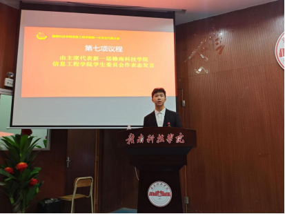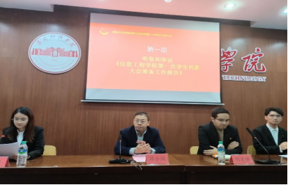 在大会正式会议中,各代表审议了《今年会学生会章程》,听取审议《信息工程系第七届学生委员会工作报告》,选举今年会第一次学生代表大会常任代表、学生会主席团成员,并进行了今年会jinnianhui今年会第一次学生代表大会常任代表第一次会议。