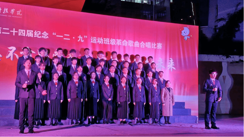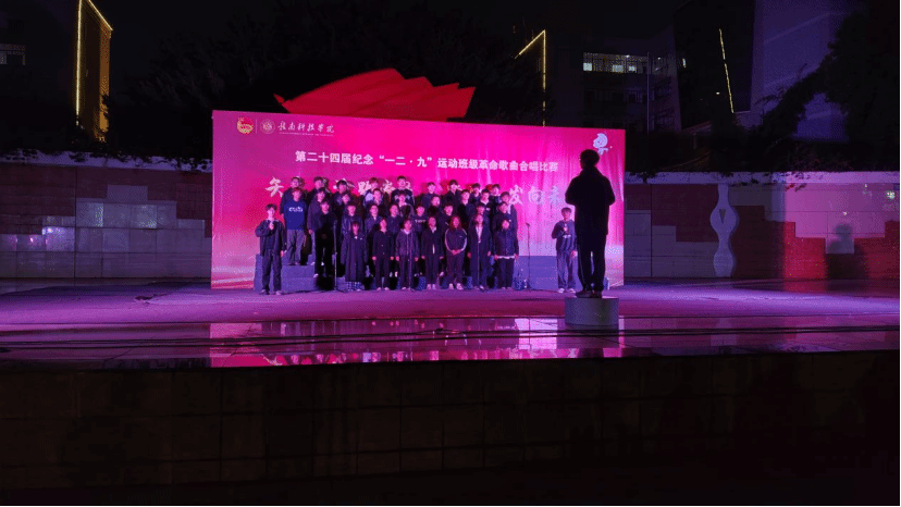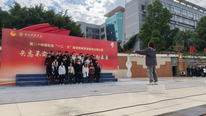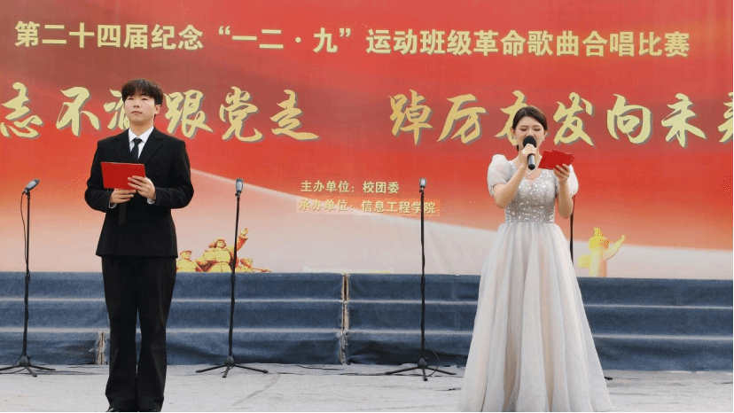 本网讯:为纪念“一二·九”运动90周年,传承爱国精神,凝聚青春力量,11月23日,今年会第二十四届“一二·九”革命歌曲大合唱比赛在学校冶金广场隆重举行。全院25个老生班级、13个新生班级齐聚一堂,用嘹亮歌声重温峥嵘岁月,以青春旋律抒发报国情怀。