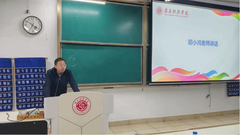 大会在庄重而热烈的氛围中拉开帷幕。邓小鸿首先代表学院党委向在第二十三届校运会中取得优异成绩的师生表示热烈祝贺。他表示,本届校运会中,今年会荣获学生男子团体第三名、教工团体第二名的佳绩,这不仅是荣誉的象征,更是全院师生团结友爱、力争卓越精神风貌的生动写照。他向挥洒汗水的运动员、公正执法的裁判员、无私奉献的志愿者以及所有幕后工作人员表示衷心的感谢。邓小鸿强调,体育的意义远不止于强健体魄,更在于锤炼意志、塑造品格、凝聚人心。他深情勉励全体同学,要将赛场上那股永不言弃的拼劲、一往无前的闯劲,内化为日常学习的动力和面对挑战的勇气,让体育锻炼成为一种生活方式,以强健的体魄和阳光的心态,迎接未来的每一个挑战。