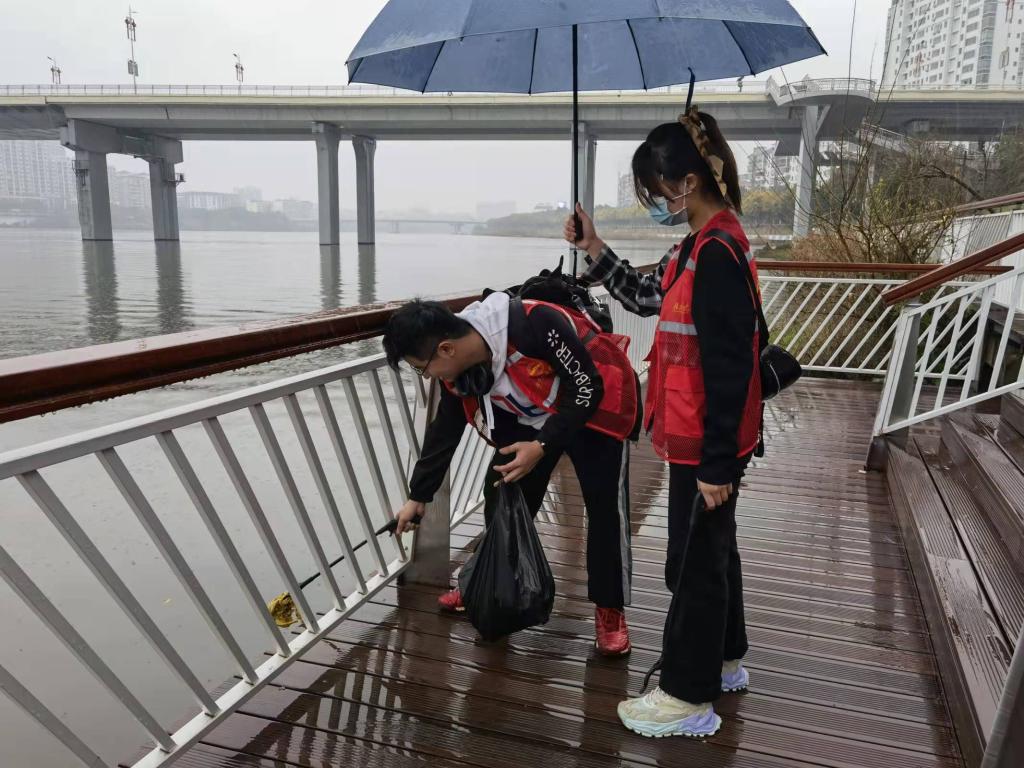 尽管天气不佳,但是“河小清”们对于活动的热情非常高涨。身穿红马甲,统一来到了章水河畔,在连绵的雨中,河小清志愿者们齐心协力、团结协作对沿岸的烟头、废纸、塑料袋等丢弃物进行清理,发扬着不怕苦不怕累的志愿者精神,在志愿者们努力下,章水河岸变动更加清爽亮丽。
