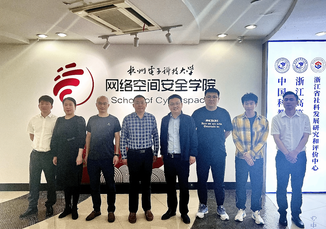随后,在安恒信息的引荐下,邓小鸿一行到杭州电子大学网络空间安全学院进行走访交流,受到学院副院长任一支的热情接待。任一支向邓小鸿一行详细介绍了杭电网络空间安全的人才培养模式。双方在高质量党建引领院系高质量发展和信息安全人才培养上面进行了深入交流,受益匪浅,为今年会申报信息安全新专业提供了良好借鉴。