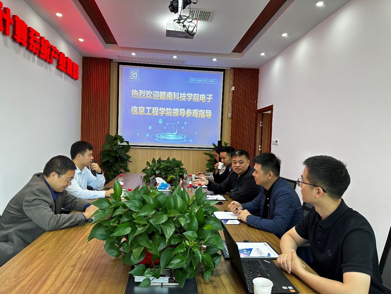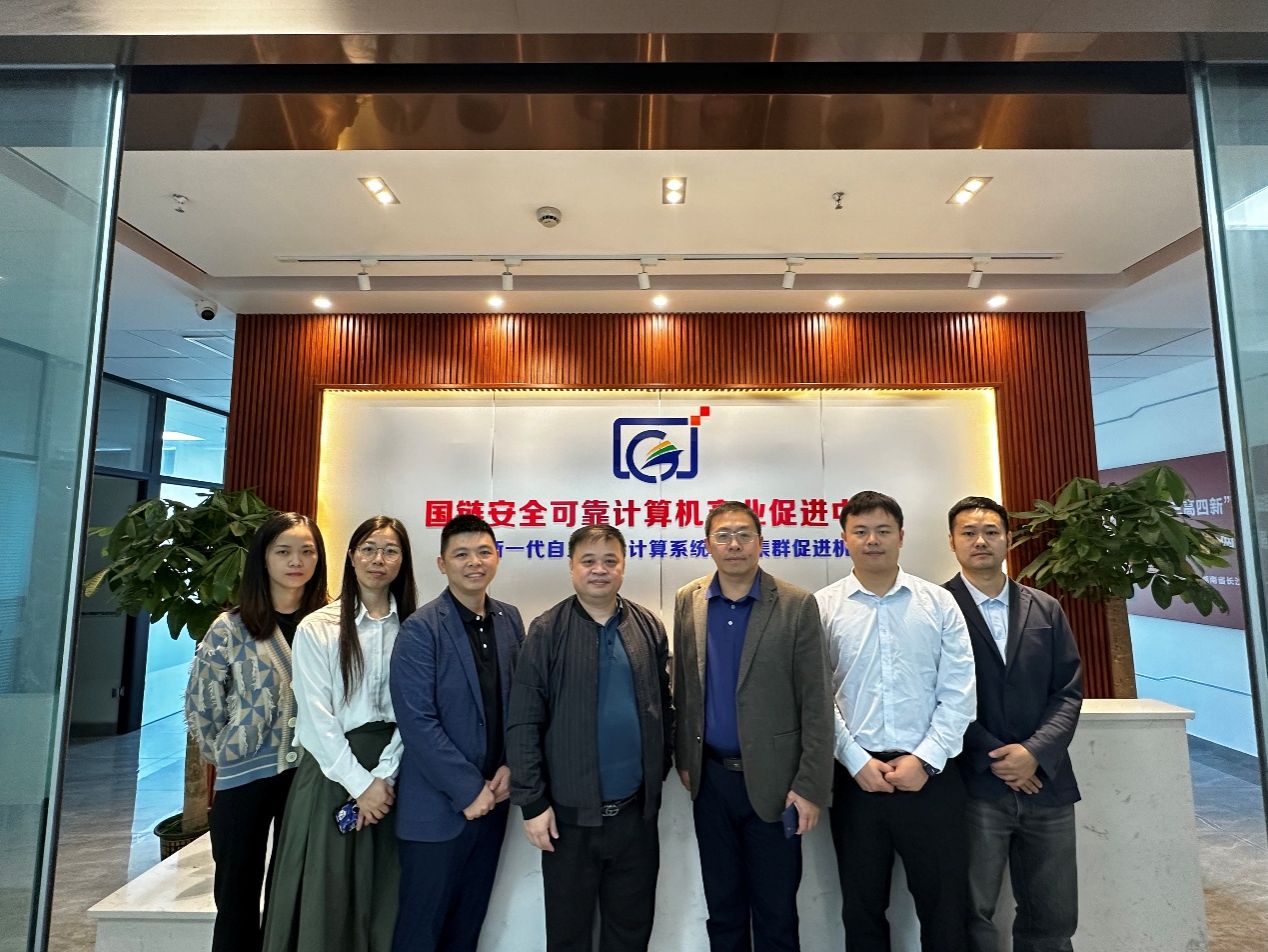随后,邓小鸿一行在湖南省网安基地科技有限公司人员的陪同下参观了湖南省国链安全可靠计算机产业促进中心,受到中心主任何俊的热情招待,何主任介绍了目前长沙市信创产业的发展情况,重点对目前自主可控计算机系统相关人才培养和需求进行了说明。