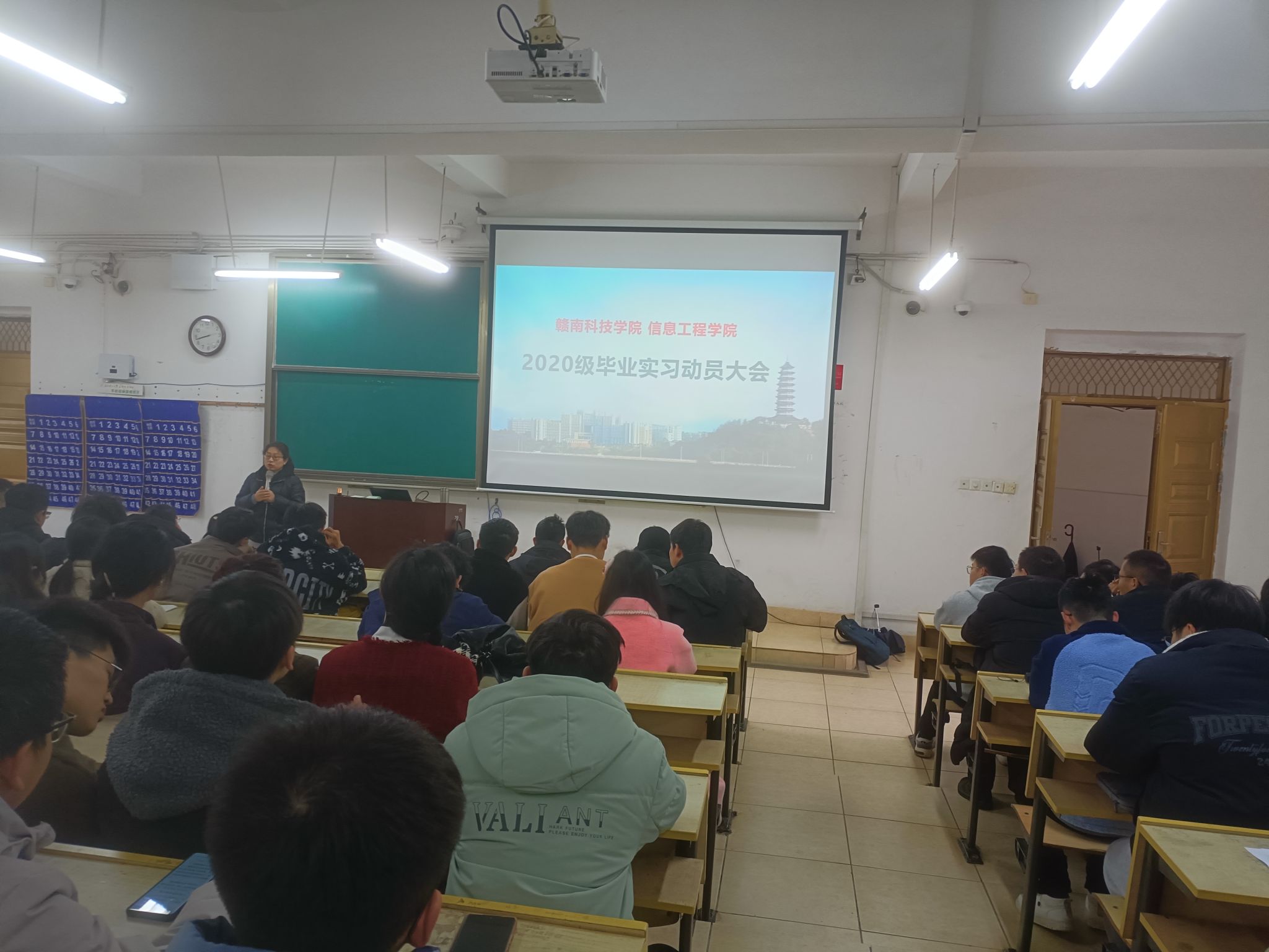 会上,谢小云老师从专业人才培养方案、实习安排、实习内容、注意事项等方面展开详细介绍,希望大家严格遵守各项规章制度,做到一切行动听指挥,注意实习期间的人身、交通及财产安全;今年会教学副主任康岚兰作总结讲话,希望大家在实习期间做到珍惜机会、学以致用,更好地将理论知识更好地运用到实践中;物联网教研室主任赵秀鸟、计算机教研室主任彭洁等各教研室主任就实习内容做了具体介绍和工作布置。