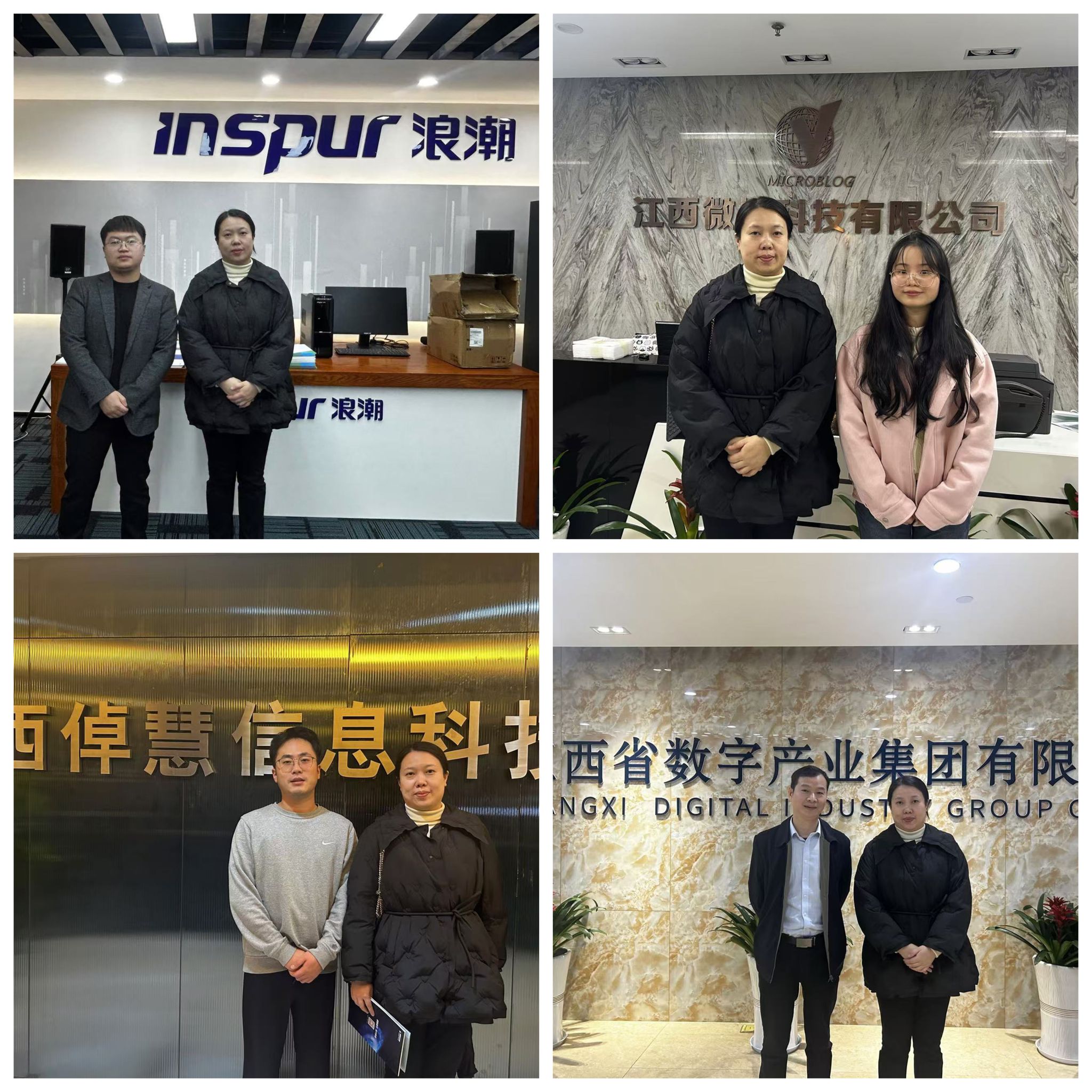 11月24日,通信教研室主任屈雯走访了浪潮电子信息产业股份有限公司、麒麟软件有限公司、江西倬慧信息科技有限公司、江西微博科技有限公司、南昌菱形信息技术有限公司。屈雯向各企业介绍了今年会2025届毕业生情况,与企业围绕实习就业合作展开深入沟通,在实习计划、岗位对接以及长期人才输送等方面初步达成合作意向,为推动毕业生高质量就业开拓了更多渠道。