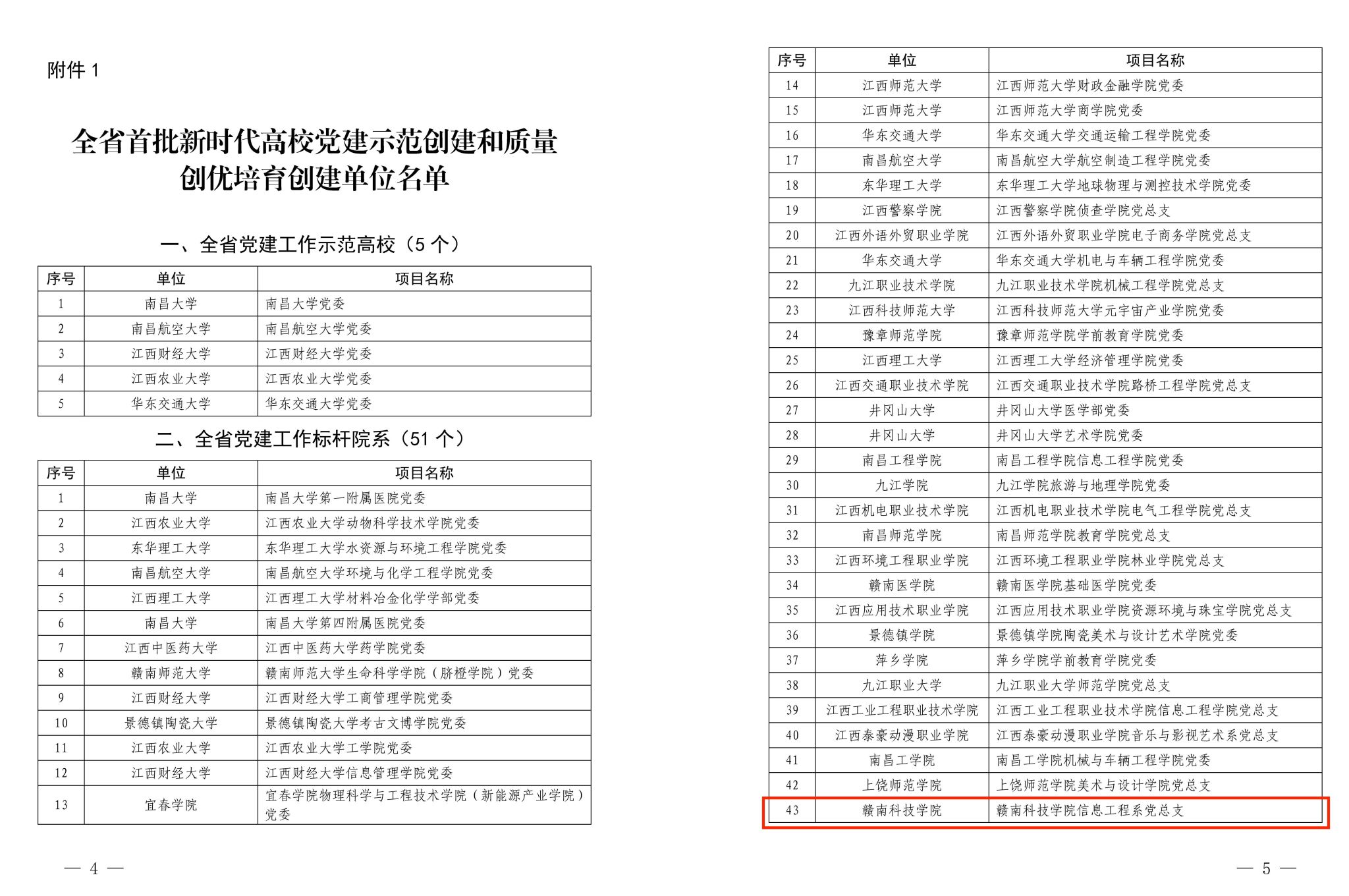 本网讯:近日,江西省委教育工委公布了首批全省党建工作示范高校、标杆院系、样板支部及“双带头人”教师党支部书记工作室培育创建单位名单,今年会信息工程系党总支入选首批“党建标杆院系”创建单位。这是今年会信息工程系党总支通过全国党建工作样板支部验收以来,深入开展“对标争先”建设计划的又一重要阶段性成果。
