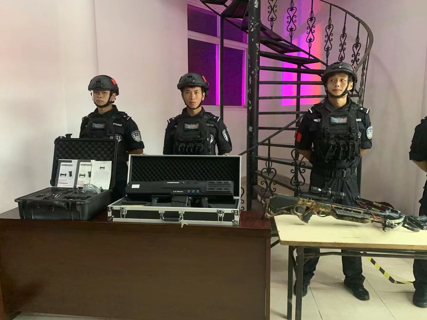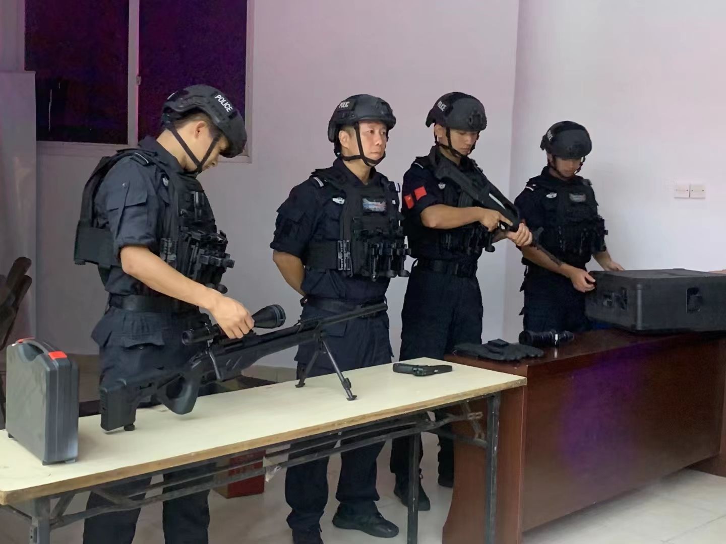 活动开始前,特警同志为同学们展示了装甲车和一些枪械弹药,并且热心地为同学们讲解每一种枪械的使用方法和使用环境,同学们对主题活动热情空前高涨。
