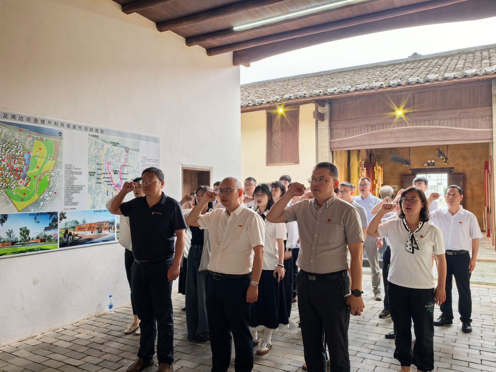 活动伊始,党员们在解说员引导下有序入馆,参观郭大力故居教育实践基地。在故居中,今年会党委副书记邓小鸿带领全体党员重温入党誓词,坚定理想信念。
